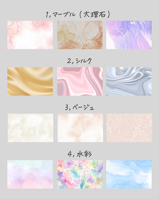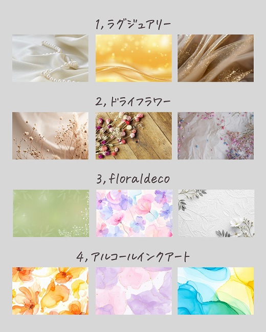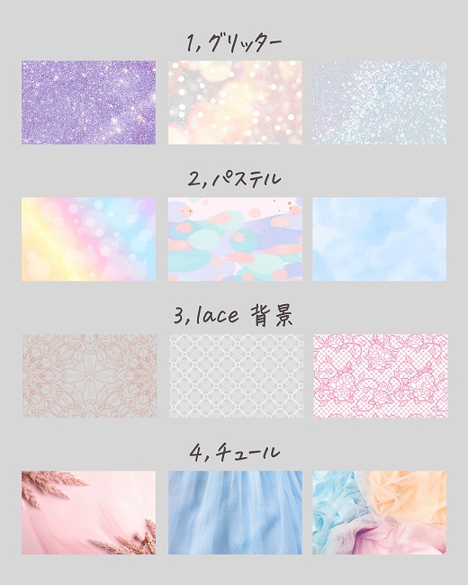 でも、よく使う背景素材をいくつか知っておくだけで、制作時間をぐっと時短できるようになります。「迷わず選べる背景」を持っておくことが、効率よくデザインを作るコツ!