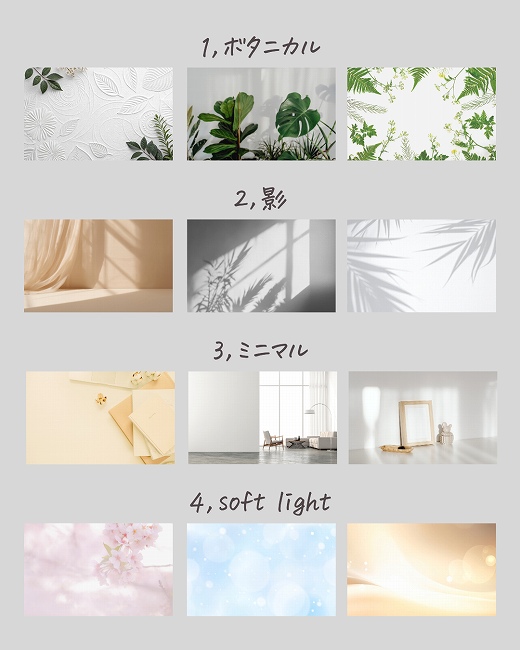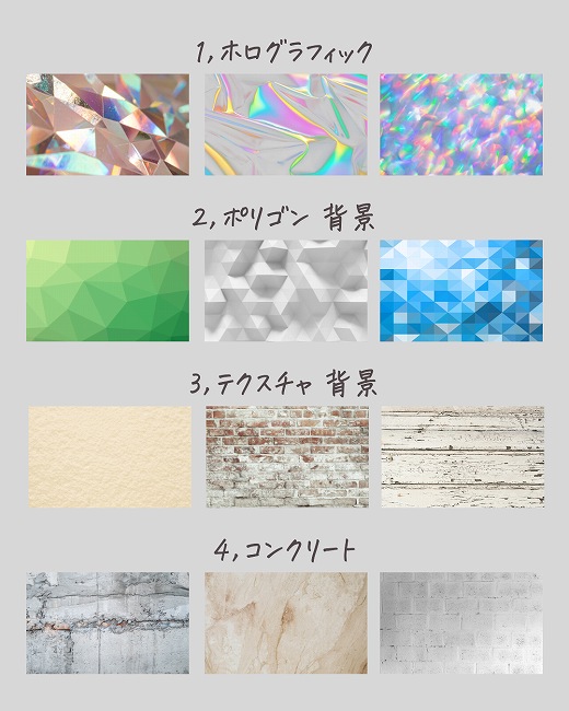 実際にインスタ投稿でもよく使う「使いやすい背景素材」をカテゴリ別に紹介します。