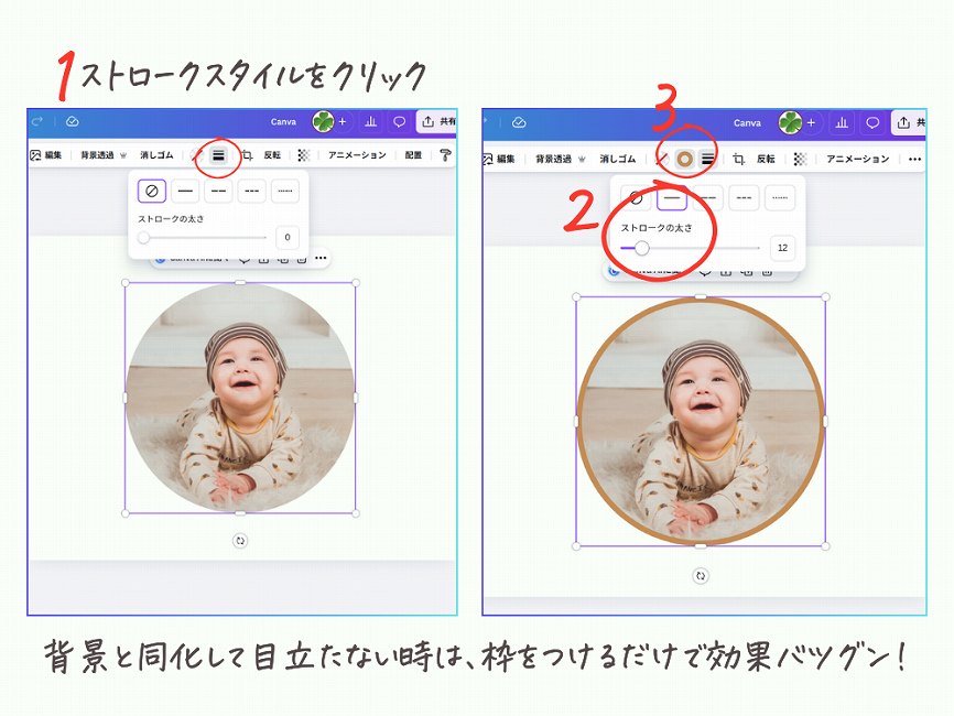アイコンやインスタ投稿で、写真を目立たせたい時に枠線をつけると効果的。