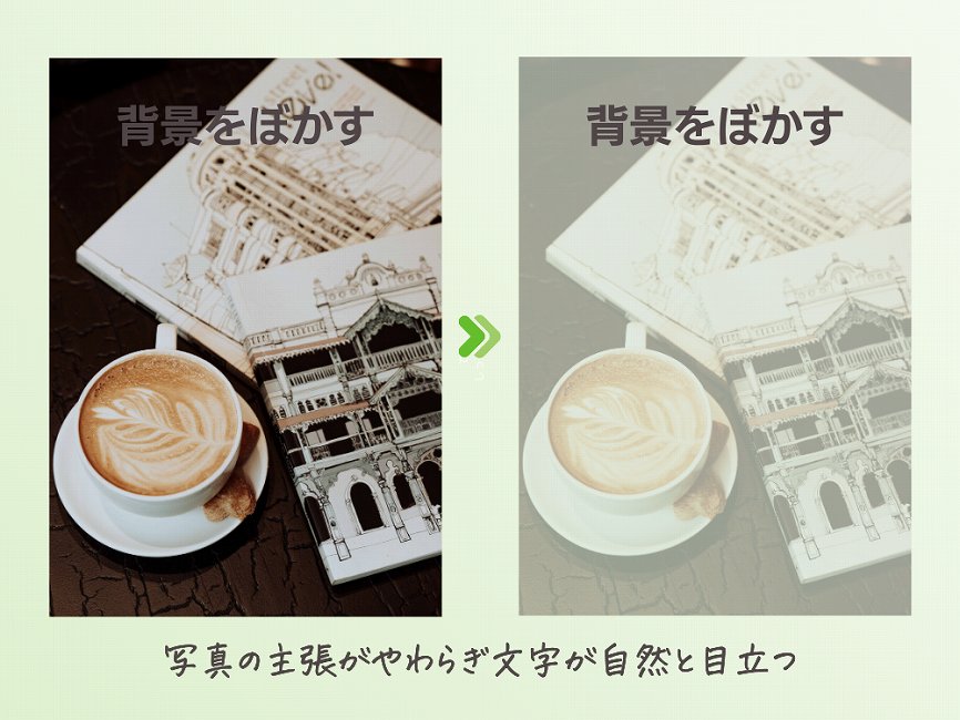 - 背景の雰囲気を残しながら文字だけクッキリ見せることが可能