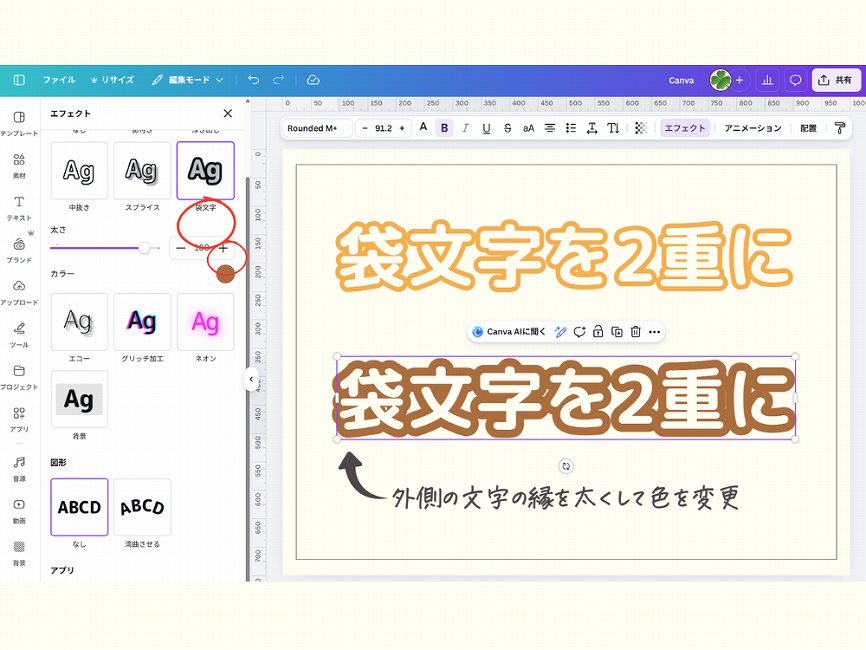Canva 袋文字を3重にする(2重に重ねる)方法