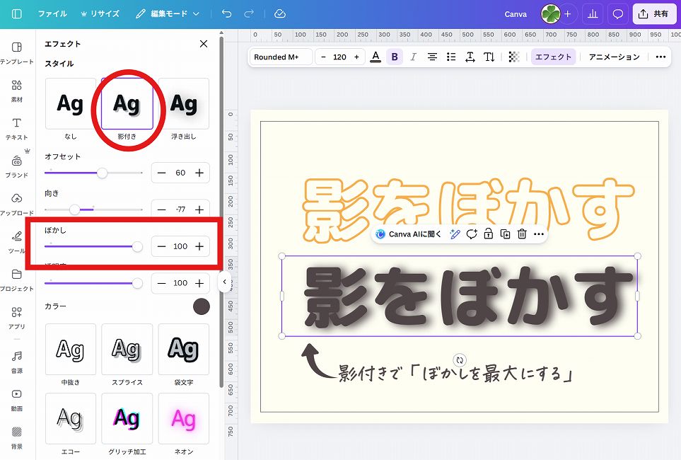 Canva 縁取りを影(シャドウ)ぼかしでふんわり見せる方法